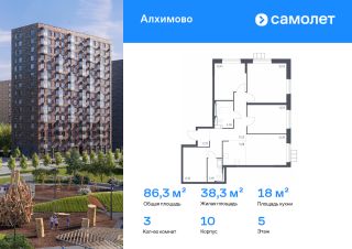 Строим кварталы для жизни с заботой о будущем. Предлагается 3-комнатная квартира комфорт-класса 86,3 кв.м в корпусе 10 на 5 этаже, в ЖК "Алхимово"