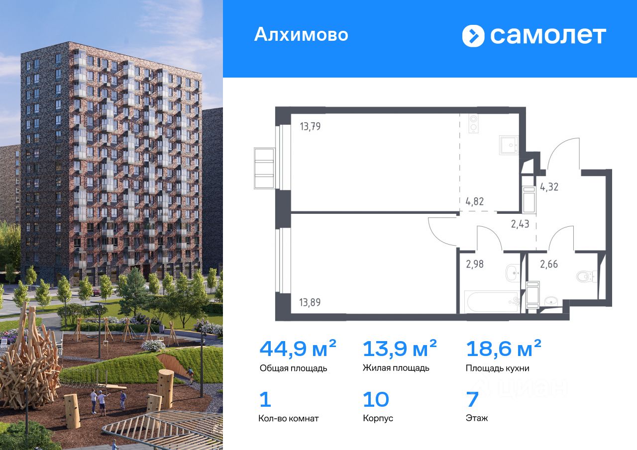 Строим кварталы для жизни с заботой о будущем. Предлагается 1-комнатная квартира комфорт-класса 44,9 кв.м в корпусе 10 на 7 этаже, в ЖК "Алхимово"