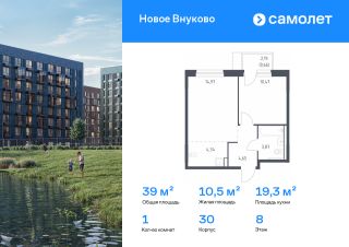 Строим кварталы для жизни с заботой о будущем. Предлагается 1-комнатная квартира комфорт-класса 38,96 кв.м в корпусе 30 на 8 этаже, в ЖК "Новое Внуково"