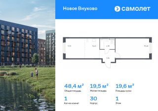 Строим кварталы для жизни с заботой о будущем. Предлагается 1-комнатная квартира комфорт-класса 48,37 кв.м в корпусе 30 на 1 этаже, в ЖК "Новое Внуково"
