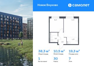 Строим кварталы для жизни с заботой о будущем. Предлагается 1-комнатная квартира комфорт-класса 38,28 кв.м в корпусе 30 на 7 этаже, в ЖК "Новое Внуково"