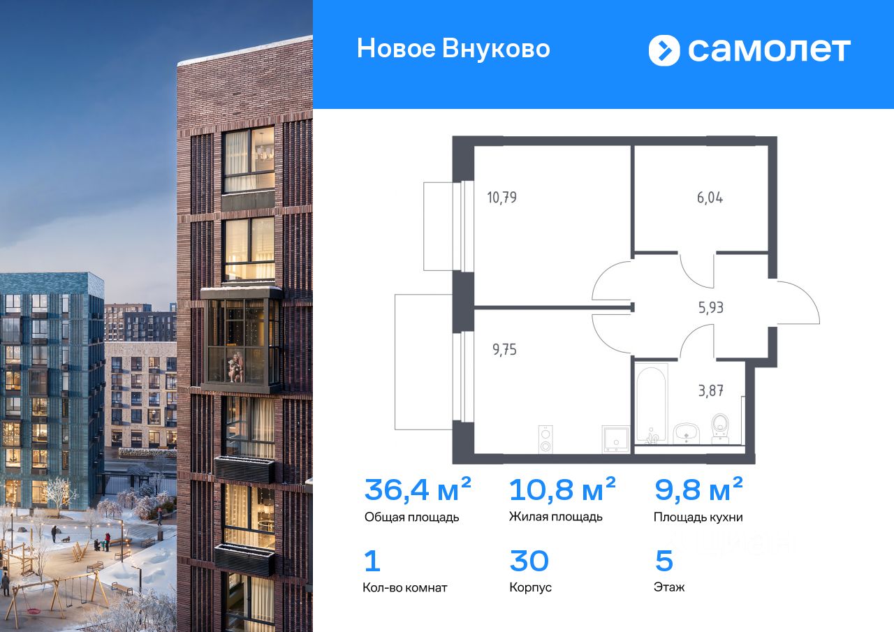Строим кварталы для жизни с заботой о будущем. Предлагается 1-комнатная квартира комфорт-класса 36,38 кв.м в корпусе 30 на 5 этаже, в ЖК "Новое Внуково"