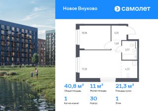 Строим кварталы для жизни с заботой о будущем. Предлагается 1-комнатная квартира комфорт-класса 40,79 кв.м в корпусе 30 на 1 этаже, в ЖК "Новое Внуково"