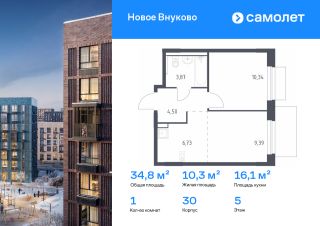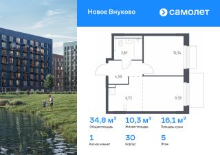 Строим кварталы для жизни с заботой о будущем. Предлагается 1-комнатная квартира комфорт-класса 34,83 кв.м в корпусе 30 на 5 этаже, в ЖК "Новое Внуково"