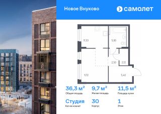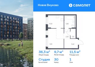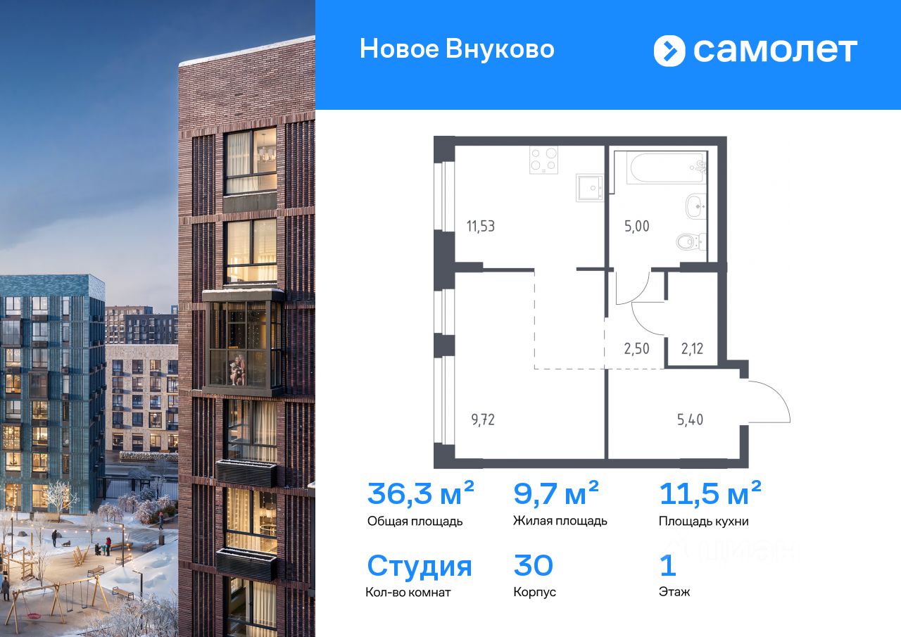 Строим кварталы для жизни с заботой о будущем. Предлагается квартира студия комфорт-класса 36,27 кв.м в корпусе 30 на 1 этаже, в ЖК "Новое Внуково"