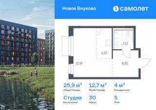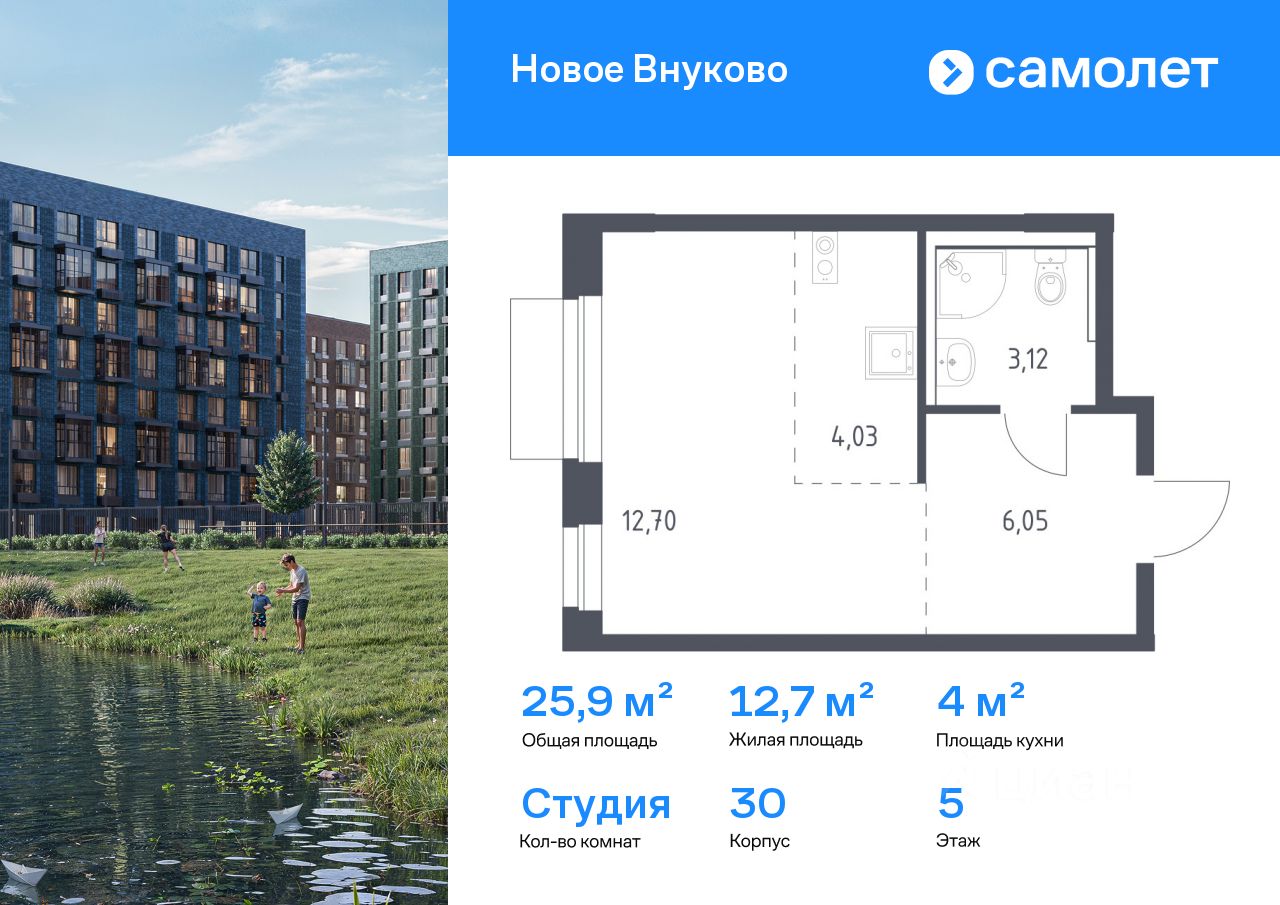 Строим кварталы для жизни с заботой о будущем. Предлагается квартира студия комфорт-класса 25,9 кв.м в корпусе 30 на 5 этаже, в ЖК "Новое Внуково"