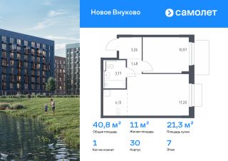 Строим кварталы для жизни с заботой о будущем. Предлагается 1-комнатная квартира комфорт-класса 40,81 кв.м в корпусе 30 на 7 этаже, в ЖК "Новое Внуково"