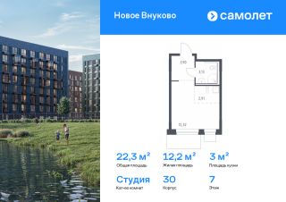 Строим кварталы для жизни с заботой о будущем. Предлагается квартира студия комфорт-класса 22,26 кв.м в корпусе 30 на 7 этаже, в ЖК "Новое Внуково"