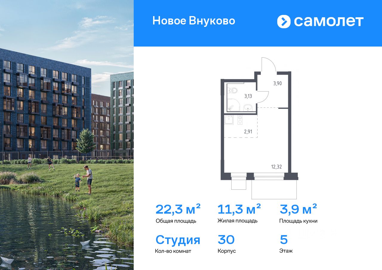 Строим кварталы для жизни с заботой о будущем. Предлагается квартира студия комфорт-класса 22,26 кв.м в корпусе 30 на 5 этаже, в ЖК "Новое Внуково"