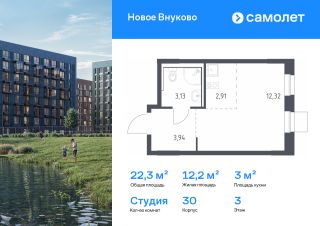 Строим кварталы для жизни с заботой о будущем. Предлагается квартира студия комфорт-класса 22,3 кв.м в корпусе 30 на 3 этаже, в ЖК "Новое Внуково"
