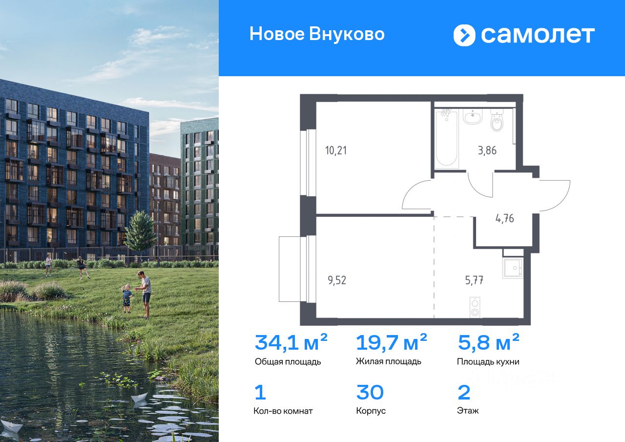 Строим кварталы для жизни с заботой о будущем. Предлагается 1-комнатная квартира комфорт-класса 34,12 кв.м в корпусе 30 на 2 этаже, в ЖК "Новое Внуково"