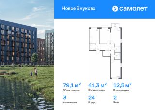 Строим кварталы для жизни с заботой о будущем. Предлагается 3-комнатная квартира комфорт-класса 79,14 кв.м в корпусе 24 на 2 этаже, в ЖК "Новое Внуково"