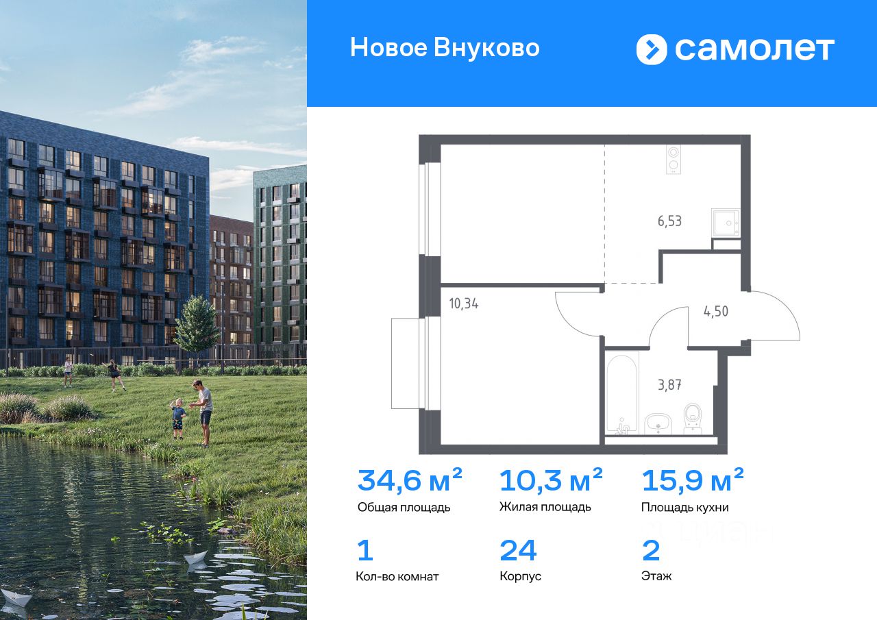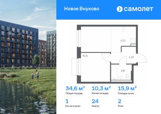 Строим кварталы для жизни с заботой о будущем. Предлагается 1-комнатная квартира комфорт-класса 34,63 кв.м в корпусе 24 на 2 этаже, в ЖК "Новое Внуково"