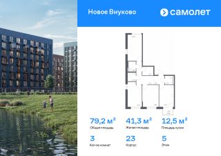 Строим кварталы для жизни с заботой о будущем. Предлагается 3-комнатная квартира комфорт-класса 79,18 кв.м в корпусе 23 на 5 этаже, в ЖК "Новое Внуково"
