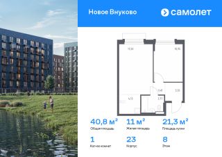 Строим кварталы для жизни с заботой о будущем. Предлагается 1-комнатная квартира комфорт-класса 40,79 кв.м в корпусе 23 на 8 этаже, в ЖК "Новое Внуково"