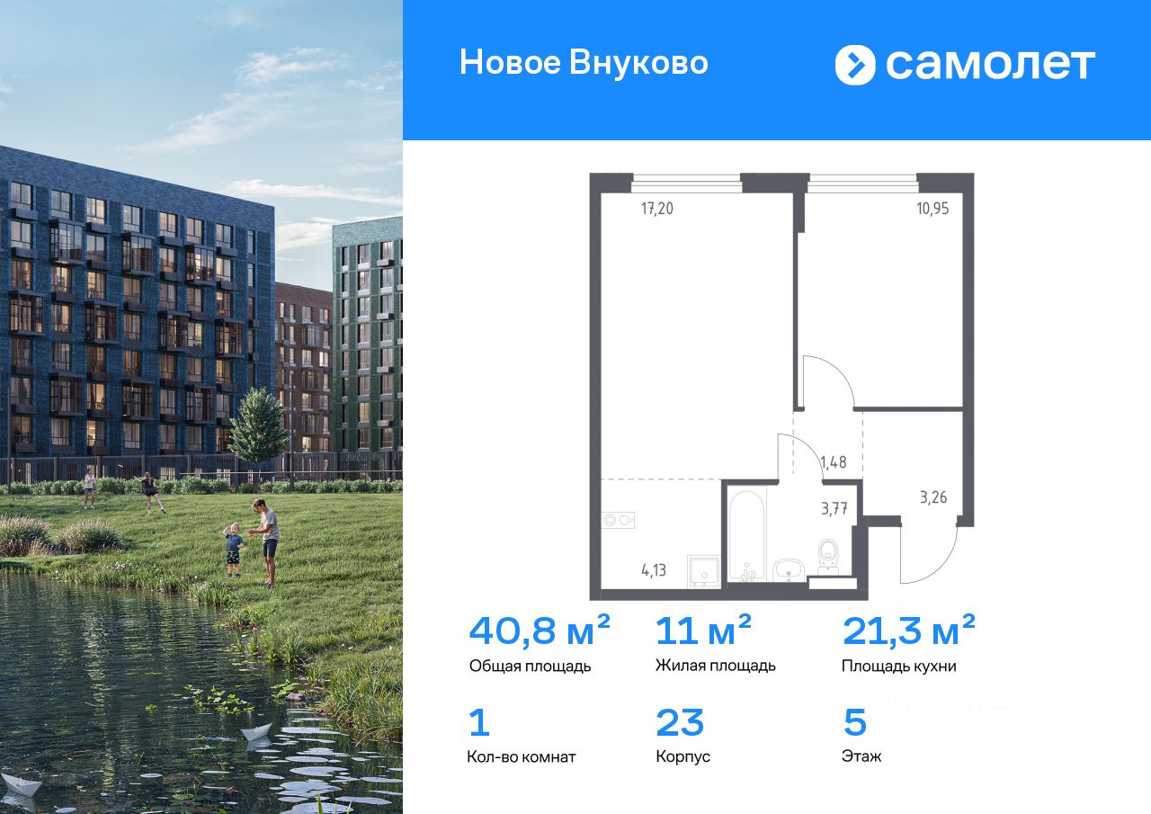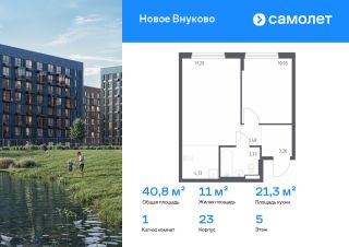 Строим кварталы для жизни с заботой о будущем. Предлагается 1-комнатная квартира комфорт-класса 40,79 кв.м в корпусе 23 на 5 этаже, в ЖК "Новое Внуково"