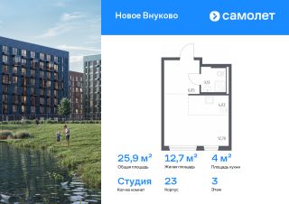 Строим кварталы для жизни с заботой о будущем. Предлагается квартира студия комфорт-класса 25,91 кв.м в корпусе 23 на 3 этаже, в ЖК "Новое Внуково"