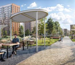 Дворы-парки закрыты от машин и посторонних. На территории — прогулочный маршрут вдоль реки Незнайка и набережная с шезлонгами и качелями для отдыха. Также здесь появится плейхаб "Незнайка на Луне", площадь для мероприятий с сухим фонтаном, летним кинотеатром и кафе.