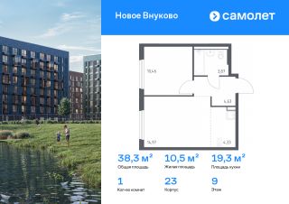 Строим кварталы для жизни с заботой о будущем. Предлагается 1-комнатная квартира комфорт-класса 38,26 кв.м в корпусе 23 на 9 этаже, в ЖК "Новое Внуково"