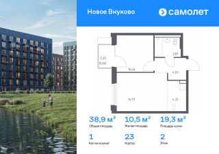 Строим кварталы для жизни с заботой о будущем. Предлагается 1-комнатная квартира комфорт-класса 38,92 кв.м в корпусе 23 на 2 этаже, в ЖК "Новое Внуково"