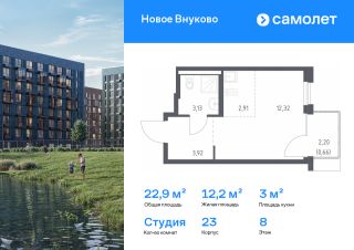 Строим кварталы для жизни с заботой о будущем. Предлагается квартира студия комфорт-класса 22,94 кв.м в корпусе 23 на 8 этаже, в ЖК "Новое Внуково"