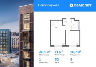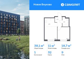 Строим кварталы для жизни с заботой о будущем. Предлагается 1-комнатная квартира комфорт-класса 38,09 кв.м в корпусе 32 на 9 этаже, в ЖК "Новое Внуково"