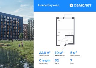 Строим кварталы для жизни с заботой о будущем. Предлагается квартира студия комфорт-класса 22,6 кв.м в корпусе 32 на 7 этаже, в ЖК "Новое Внуково"
