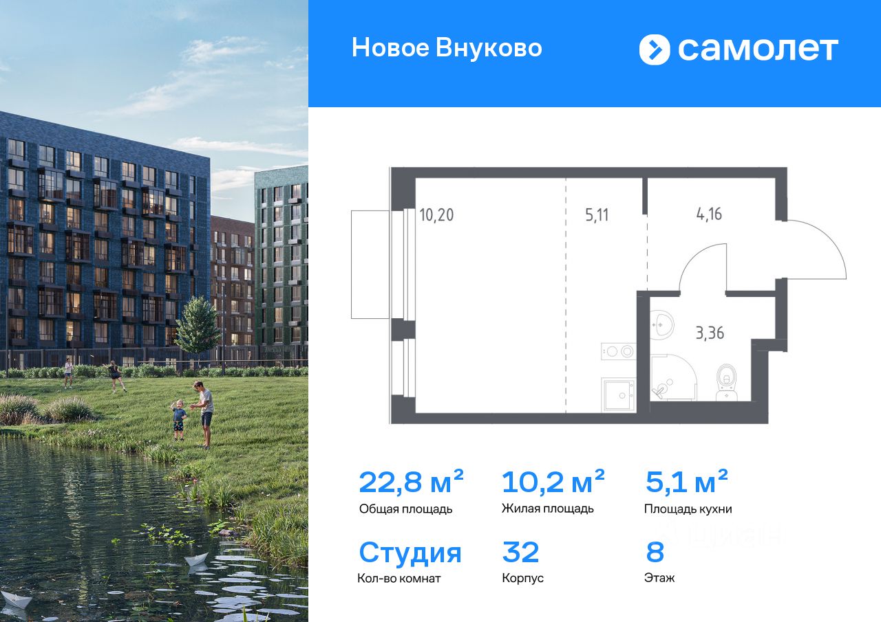 Строим кварталы для жизни с заботой о будущем. Предлагается квартира студия комфорт-класса 22,83 кв.м в корпусе 32 на 8 этаже, в ЖК "Новое Внуково"