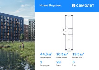 Строим кварталы для жизни с заботой о будущем. Предлагается 1-комнатная квартира комфорт-класса 44,25 кв.м в корпусе 29 на 3 этаже, в ЖК "Новое Внуково"