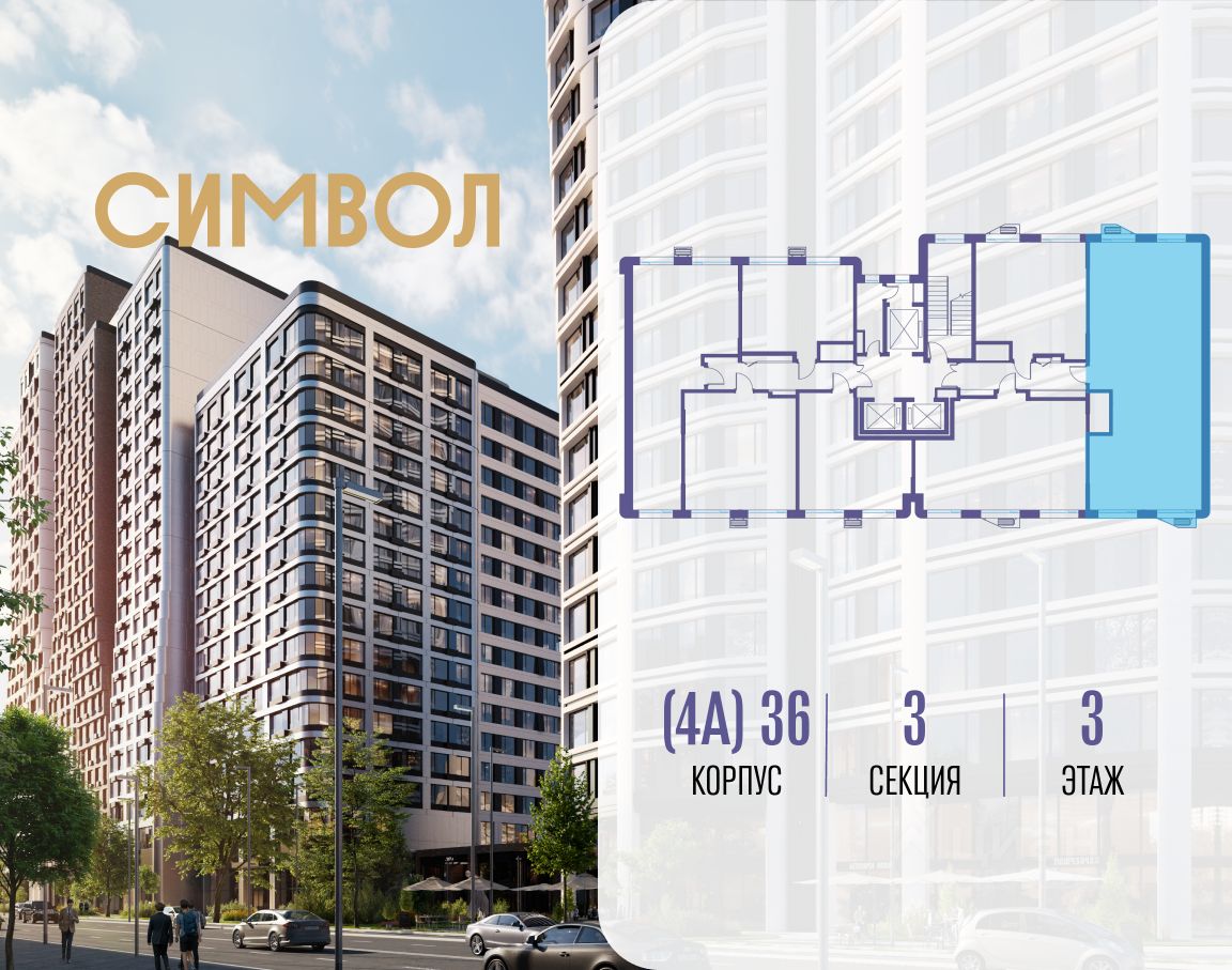 Продается 3-комнатная квартира от застройщика: общая площадь 103.20 м², жилая 47.30 м², кухня 25.10 м², 3-й этаж, жилой квартал "Гордость", корпус 36 (секция 3). Срок сдачи: 2 квартал 2029 года.