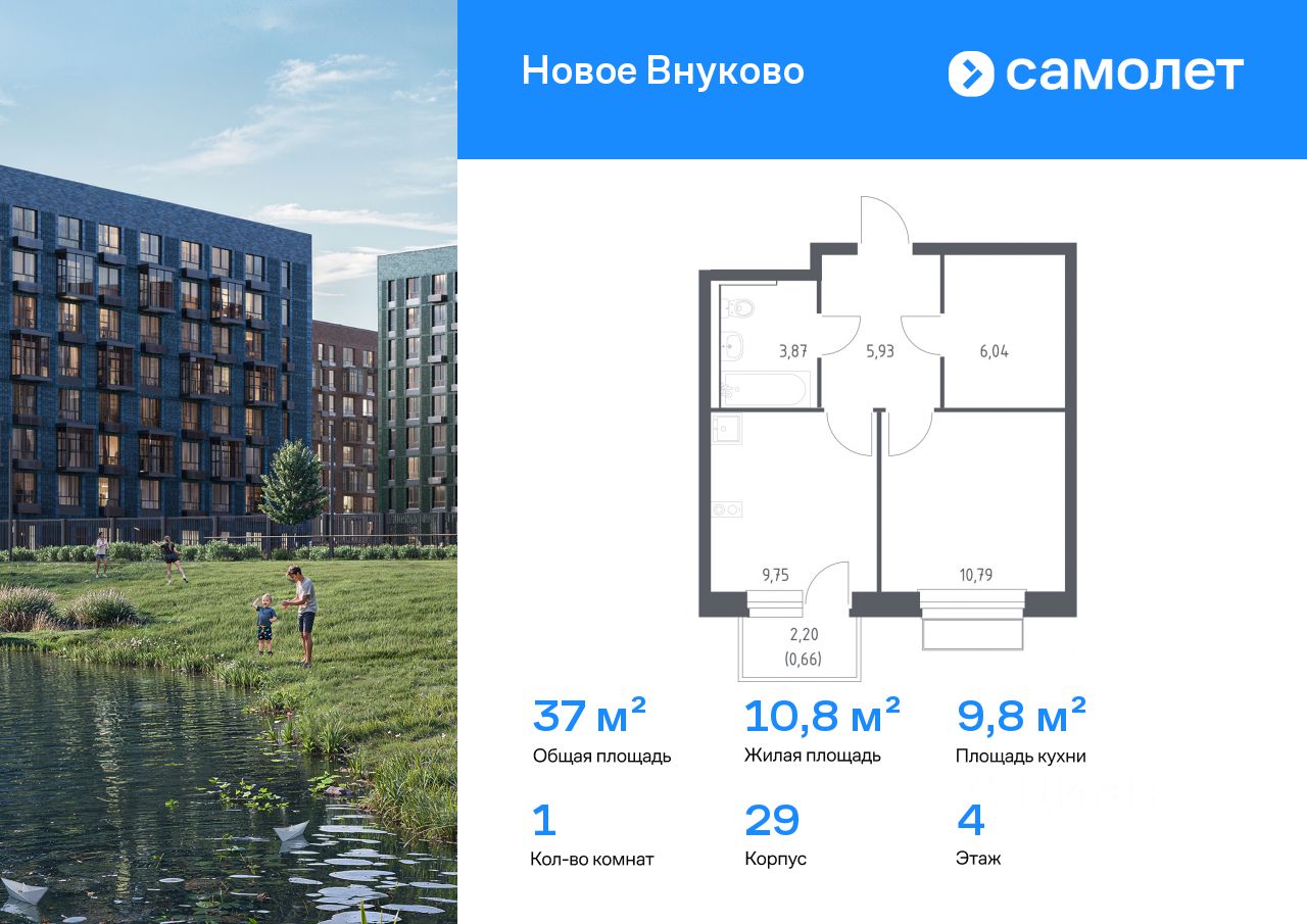Строим кварталы для жизни с заботой о будущем. Предлагается 1-комнатная квартира комфорт-класса 37,04 кв.м в корпусе 29 на 4 этаже, в ЖК "Новое Внуково"