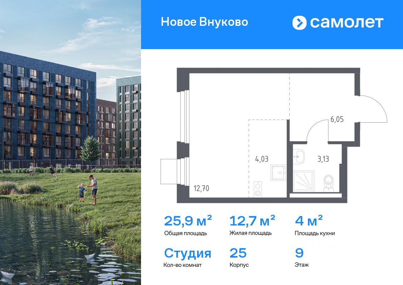 Строим кварталы для жизни с заботой о будущем. Предлагается квартира студия комфорт-класса 25,91 кв.м в корпусе 25 на 9 этаже, в ЖК "Новое Внуково"