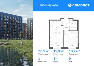 Строим кварталы для жизни с заботой о будущем. Предлагается 1-комнатная квартира комфорт-класса 38,23 кв.м в корпусе 34 на 6 этаже, в ЖК "Новое Внуково"