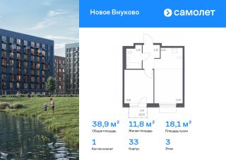 Строим кварталы для жизни с заботой о будущем. Предлагается 1-комнатная квартира комфорт-класса 38,89 кв.м в корпусе 33 на 3 этаже, в ЖК "Новое Внуково"