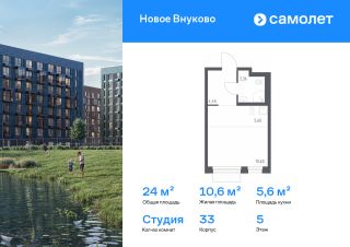 Строим кварталы для жизни с заботой о будущем. Предлагается квартира студия комфорт-класса 24,02 кв.м в корпусе 33 на 5 этаже, в ЖК "Новое Внуково"