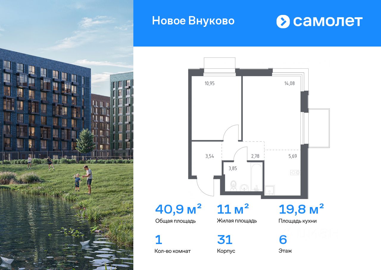 Строим кварталы для жизни с заботой о будущем. Предлагается 1-комнатная квартира комфорт-класса 40,89 кв.м в корпусе 31 на 6 этаже, в ЖК "Новое Внуково"