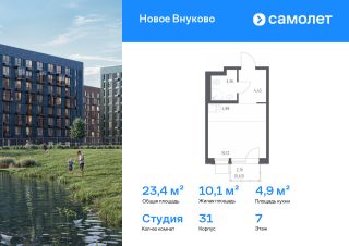 Строим кварталы для жизни с заботой о будущем. Предлагается квартира студия комфорт-класса 23,44 кв.м в корпусе 31 на 7 этаже, в ЖК "Новое Внуково"