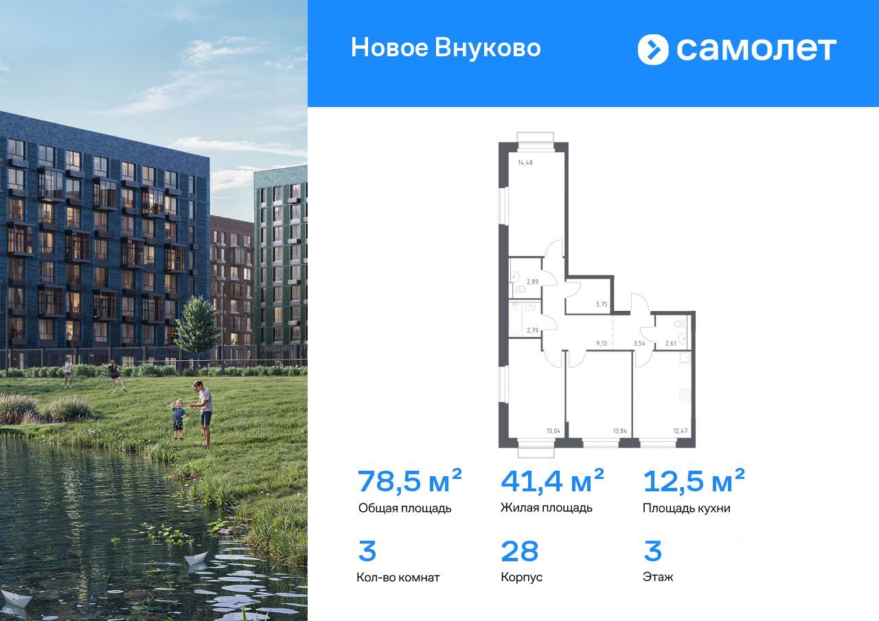 Строим кварталы для жизни с заботой о будущем. Предлагается 3-комнатная квартира комфорт-класса 78,54 кв.м в корпусе 28 на 3 этаже, в ЖК "Новое Внуково"