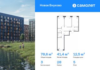 Строим кварталы для жизни с заботой о будущем. Предлагается 3-комнатная квартира комфорт-класса 78,6 кв.м в корпусе 28 на 5 этаже, в ЖК "Новое Внуково"