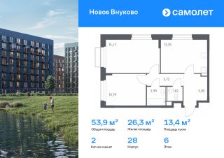 Строим кварталы для жизни с заботой о будущем. Предлагается 2-комнатная квартира комфорт-класса 53,94 кв.м в корпусе 28 на 6 этаже, в ЖК "Новое Внуково"