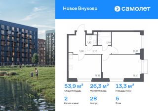 Строим кварталы для жизни с заботой о будущем. Предлагается 2-комнатная квартира комфорт-класса 53,92 кв.м в корпусе 28 на 5 этаже, в ЖК "Новое Внуково"