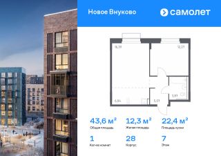 Строим кварталы для жизни с заботой о будущем. Предлагается 1-комнатная квартира комфорт-класса 43,64 кв.м в корпусе 28 на 7 этаже, в ЖК "Новое Внуково"