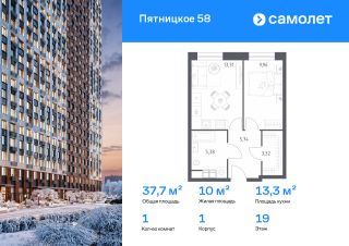 Строим кварталы для жизни с заботой о будущем. Предлагаются 1-комнатные апартаменты комфорт-класса 37,71 кв.м в корпусе 1 на 19 этаже, в ЖК "Пятницкое 58"