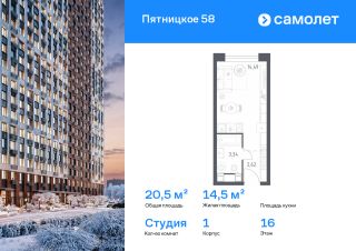 Строим кварталы для жизни с заботой о будущем. Предлагаются апартаменты студия комфорт-класса 20,45 кв.м в корпусе 1 на 16 этаже, в ЖК "Пятницкое 58"