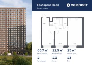 Строим кварталы для жизни с заботой о будущем. Предлагаются 2-комнатные апартаменты бизнес-класса 65,74 кв.м в корпусе 2.3 на 23 этаже, в МФК "Тропарево Парк"