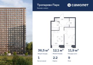 Строим кварталы для жизни с заботой о будущем. Предлагаются 1-комнатные апартаменты бизнес-класса 36,47 кв.м в корпусе 2.2 на 9 этаже, в МФК "Тропарево Парк"