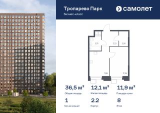 Строим кварталы для жизни с заботой о будущем. Предлагаются 1-комнатные апартаменты бизнес-класса 36,47 кв.м в корпусе 2.2 на 8 этаже, в МФК "Тропарево Парк"