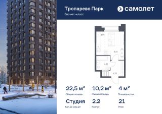 Строим кварталы для жизни с заботой о будущем. Предлагаются апартаменты студия бизнес-класса 22,52 кв.м в корпусе 2.2 на 21 этаже, в МФК "Тропарево Парк"