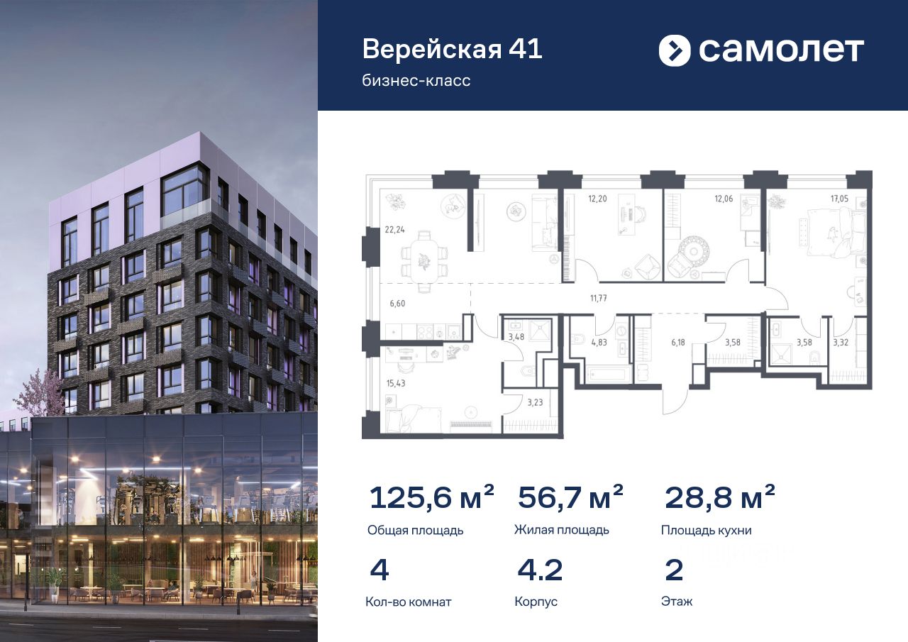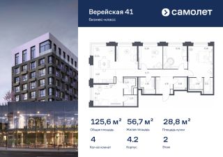 Строим кварталы для жизни с заботой о будущем. Предлагается 4-комнатная квартира бизнес-класса 125,55 кв.м в корпусе 4.2 на 2 этаже, в "Верейская 41"