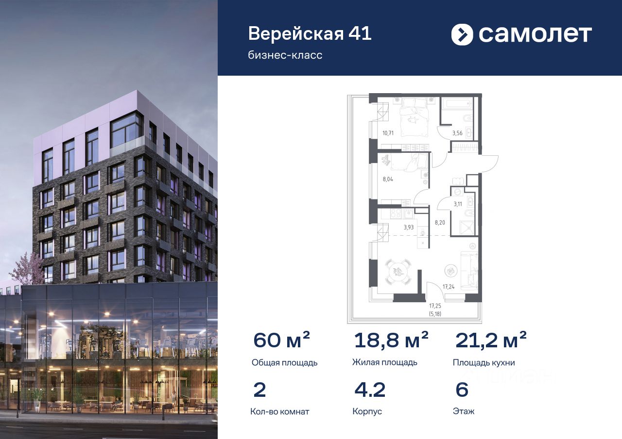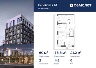 Строим кварталы для жизни с заботой о будущем. Предлагается 2-комнатная квартира бизнес-класса 59,97 кв.м в корпусе 4.2 на 6 этаже, в "Верейская 41"